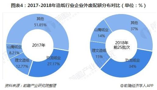 而從外廢配額的企業(yè)分布來看,有向龍頭企業(yè)集中的趨勢。2018年前25批次外廢配額中玖龍紙業(yè)、理文造紙、山鷹紙業(yè)三家廢紙系龍頭獲得配額占比達(dá)63%,較2017年的48%有明顯提升。長期來看,外廢進(jìn)口清零大勢所趨,各企業(yè)也通過尋求替代原料的方式來解決這一問題。而龍頭企業(yè)依靠資金優(yōu)勢和前瞻性的布局,在原料端布局深厚,并且通過海外產(chǎn)能建設(shè)來獲得原料供應(yīng),具備比較優(yōu)勢。