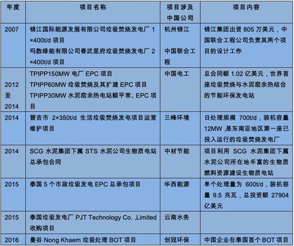 垃圾發(fā)電是中泰兩國清潔能源合作的一個重要方向。目前已有杭州錦江、中國聯(lián)合工程、中國電工、三峰環(huán)境、中材節(jié)能、華西能源、云南水務,以及創(chuàng)冠環(huán)保等中國企業(yè),通過投資收購、工程承包、運營維護等方式參與泰國的垃圾發(fā)電合作。