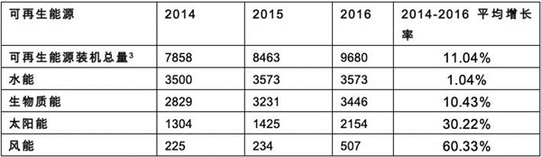 表2:越南2014-2016年可再生能源裝機容量(單位:兆瓦)