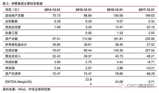 (1)業(yè)務(wù)擴張速度快,資金流動性趨緊,債務(wù)負擔持續(xù)加重。近年來集團與子公司在建工程項目合同金額不斷增大,前期的資金投入大。項目投資對外部融資的需求大,依靠負債規(guī)模持續(xù)擴張,由14年的70.67億元增至17年207.54億元。神霧集團分別質(zhì)押神霧環(huán)保和神霧節(jié)能兩家上市總公司總持股比例的99.78%、82.49%,外部融資渠道收緊、融資環(huán)境惡劣。且違約后續(xù),相繼有南京銀行借貸糾紛升級被查封1億元財產(chǎn)、控股股東持股被全部司法凍結(jié)等事件發(fā)生。