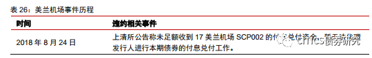 海口美蘭國際機場有限責任公司為海航系企業(yè)之一,目前公司無實際控制人。美蘭機場以海口美蘭國際機場為運營載體,整體業(yè)務(wù)經(jīng)營穩(wěn)定。公司主要從事??诿捞m國際機場運行業(yè)務(wù),其中航空地面服務(wù)及機場建設(shè)費返還是公司毛利潤的主要來源。2018年8月24日晚,上清所公告稱未足額收到17美蘭機場SCP002的付息兌付資金,暫無法代理發(fā)行人進行本期債券的付息兌付工作。8月27日,美蘭機場公告稱因系統(tǒng)關(guān)閉,未能及時將資金劃轉(zhuǎn)至銀行間市場清算所應(yīng)收固定收益產(chǎn)品付息兌付資金戶,實際于8月27日兌付。