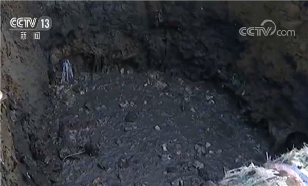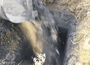 有關(guān)部門決定讓友聯(lián)化工和項目承包方將這些單氰胺廢渣和生活垃圾拉走。但是村民們稱這些化工垃圾并沒有全部拉走。記者找來了一臺挖掘機想一探究竟。挖掘機一開始挖,就發(fā)現(xiàn)了帶著強烈氨氣氣味的黑色物質(zhì)。