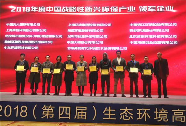中國錦江環(huán)境控股有限公司 榮獲 2018年度中國戰(zhàn)略性新興環(huán)保產(chǎn)業(yè) 領(lǐng)軍企業(yè)