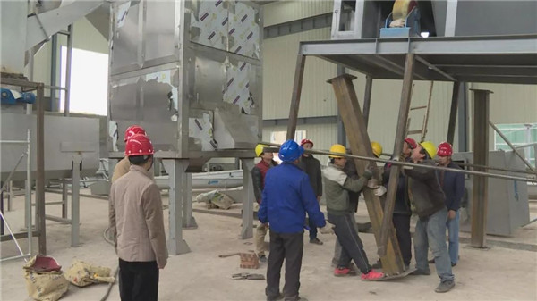 在豐都縣規(guī)?;锬茉垂こ探ㄔO(shè)現(xiàn)場(chǎng),工程土建已全部完成,工人們正在餐廚車(chē)間安裝機(jī)器設(shè)備,而工程厭氧發(fā)酵系統(tǒng)、有機(jī)肥生產(chǎn)等設(shè)備安裝已經(jīng)完成。