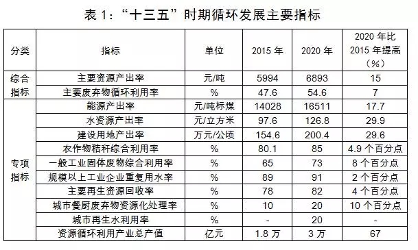 根據(jù)《引領(lǐng)行動(dòng)》,到2020年,我國(guó)主要資源產(chǎn)出率比2015年提高15%,主要廢棄物循環(huán)利用率達(dá)到54.6%左右;一般工業(yè)固體廢物綜合利用率達(dá)到73%,農(nóng)作物秸稈綜合利用率達(dá)到85%。