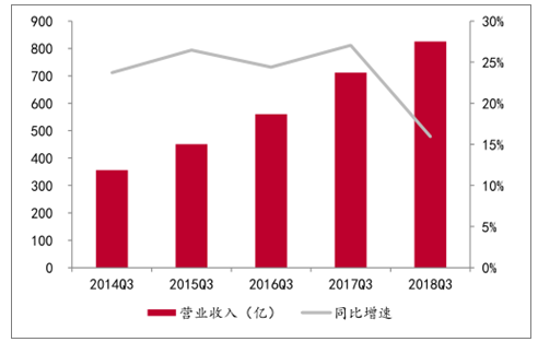 調(diào)整后環(huán)保板塊2014Q3-2018Q3營業(yè)收入