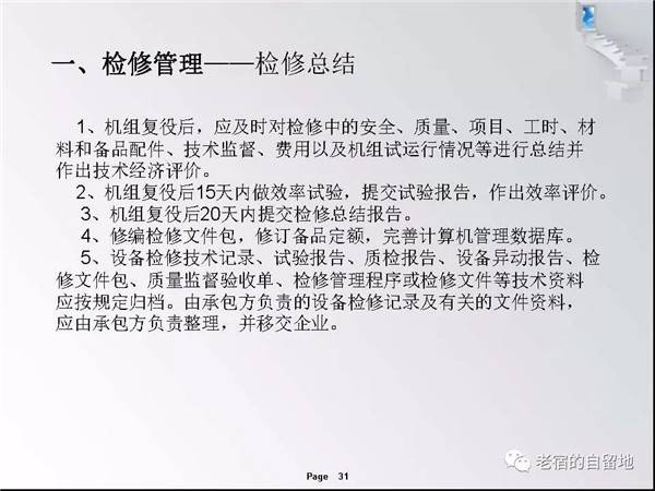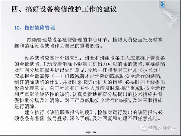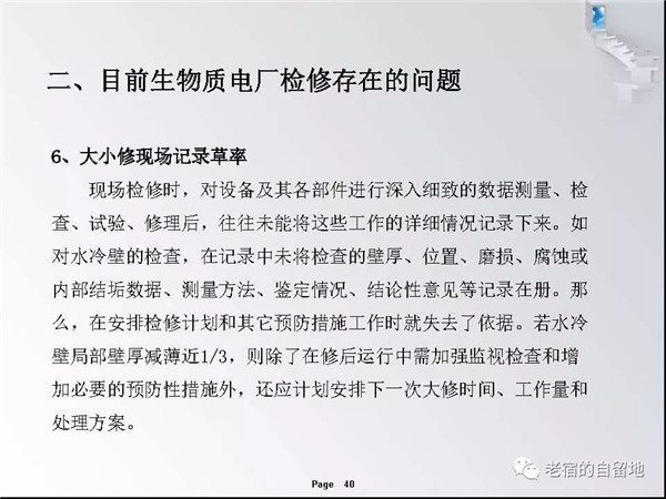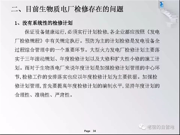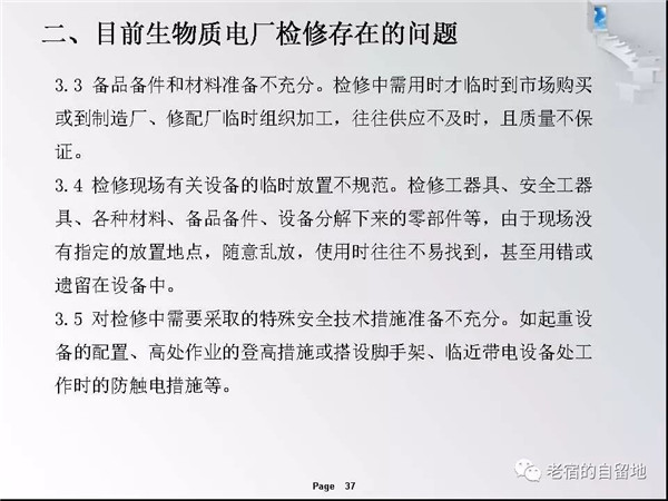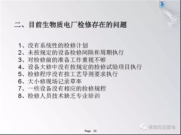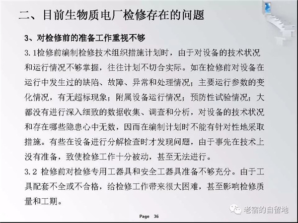 隨著國家對生物質能開發(fā)總是和支持,近幾年生物質發(fā)電得以迅猛發(fā)展。在企業(yè)運營過程中,比較突出的問題是有的企業(yè)對設備檢修維護工作重視不夠,導致設備故障率高、運行周期短、效率低,個別單位的設備甚至到了不破不修,不壞不修的狀態(tài)、嚴重影響了安全經(jīng)濟運行,對企業(yè)生存發(fā)展造成了重大影響。下面就生物質發(fā)電企業(yè)檢修管理和重點關注方面進行交流。