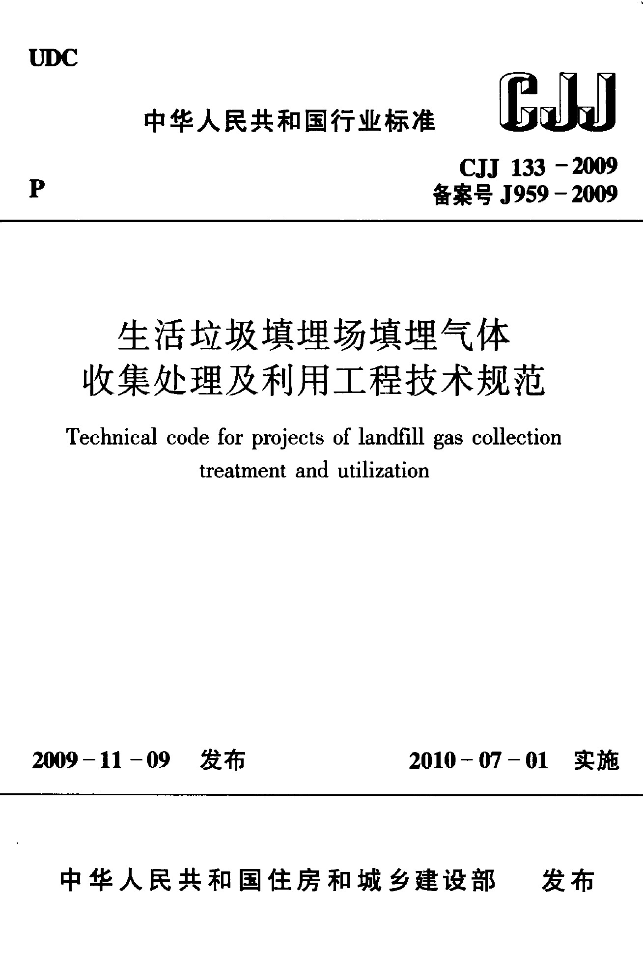 生活垃圾填埋場(chǎng)填埋氣體收集處理及利用工程技術(shù)規(guī)范(CJJ 133-2009)