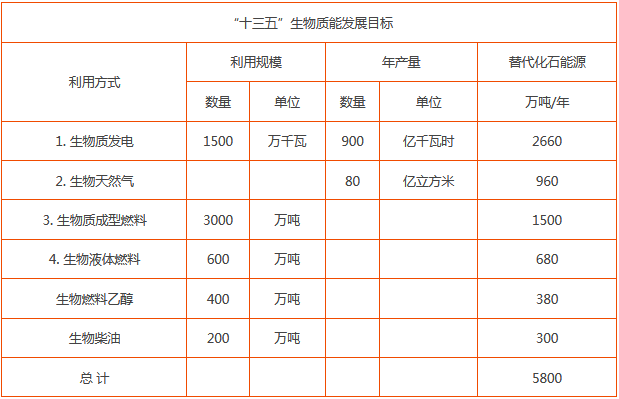 到2020年,生物質(zhì)能基本實(shí)現(xiàn)商業(yè)化和規(guī)模化利用。生物質(zhì)能年利用量約5800萬(wàn)噸標(biāo)準(zhǔn)煤。生物質(zhì)發(fā)電總裝機(jī)容量達(dá)到1500萬(wàn)千瓦,年發(fā)電量900億千瓦時(shí),其中農(nóng)林生物質(zhì)直燃發(fā)電700萬(wàn)千瓦,城鎮(zhèn)生活垃圾焚燒發(fā)電750萬(wàn)千瓦,沼氣發(fā)電50萬(wàn)千瓦;生物天然氣年利用量80億立方米;生物液體燃料年利用量600萬(wàn)噸;生物質(zhì)成型燃料年利用量3000萬(wàn)噸。
