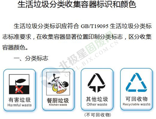 各地應(yīng)將生活垃圾按照有害垃圾、易腐垃圾、可回收物、其他垃圾進行分類,并建立與分類品種相適應(yīng)的分類投放、分類收集、分類運輸、分類處置設(shè)施體系。
