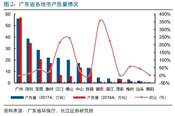 廣東省2017年危廢產(chǎn)量同比增31%至232萬噸