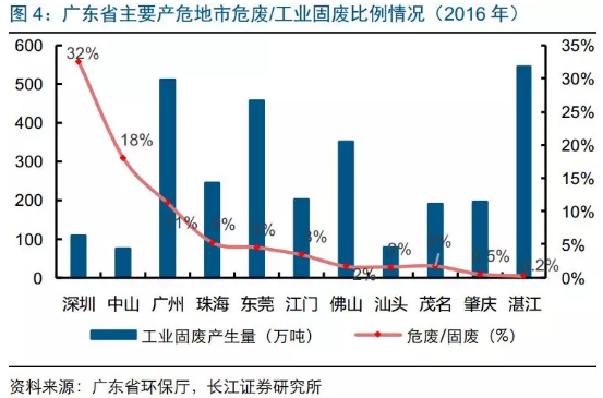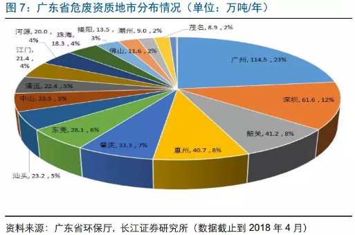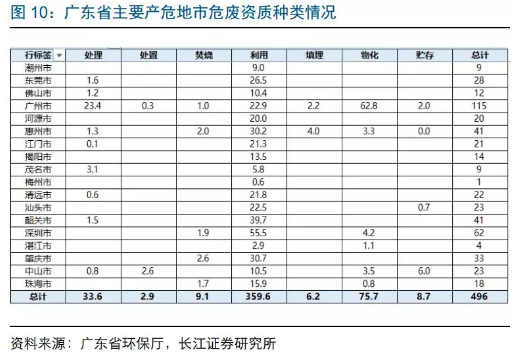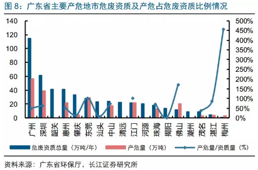 目前廣東危廢資質達496萬噸,廣州、深圳占36%