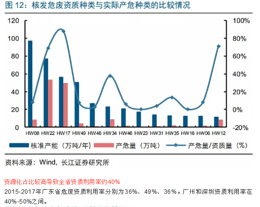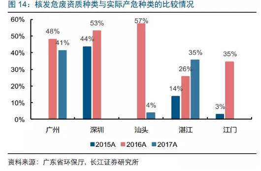 廣州市危廢資質最齊全,物化最大(63萬噸),占本市資質總量的55%;