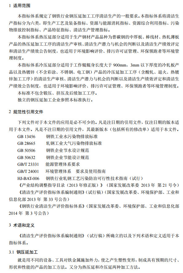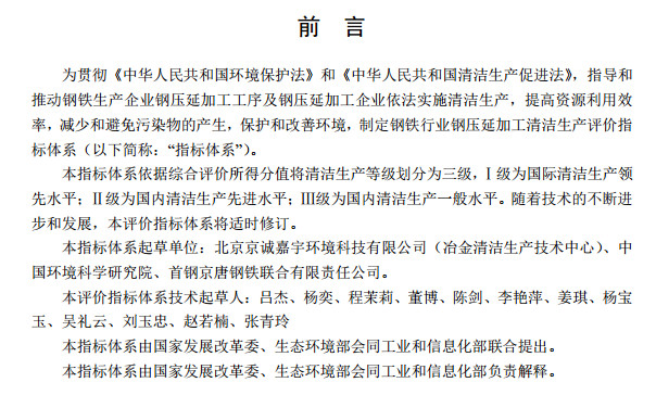 近日,國家發(fā)改委發(fā)布了鋼鐵行業(yè)(鋼延壓加工)清潔生產評價指標體系,該政策對于鋼延壓加工工序中的大氣污染物排放量、水污染物排放量、固體廢物處置方面都進行了說明,全文如下: