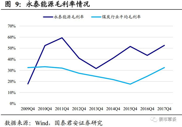行業(yè)景氣低迷背景下的畸高毛利率。永泰能源是一家上市民企,主營(yíng)業(yè)務(wù)方向?yàn)殡娏?、煤炭和石化貿(mào)易。2014-2015年,煤炭行業(yè)產(chǎn)能過剩問題嚴(yán)重,煤炭?jī)r(jià)格呈下滑態(tài)勢(shì),行業(yè)景氣度低迷,14、15年行業(yè)平均毛利率為21.66%和17.57%,分別同比下降11.76%和18.88%。而永泰能源卻在整個(gè)煤炭行業(yè)景氣低迷的背景下卻擁有相當(dāng)不錯(cuò)的毛利率,永泰在的煤炭業(yè)務(wù)14、15年毛利率分別為41.11%和51.64%,分別同比上升29.77%和25.61%。這在強(qiáng)周期行業(yè)低迷期是較為可疑的。