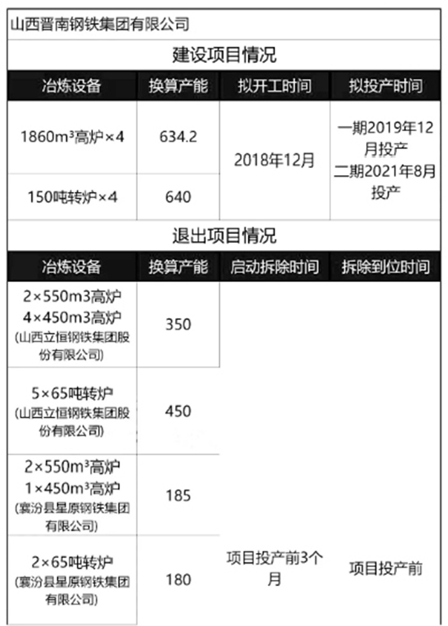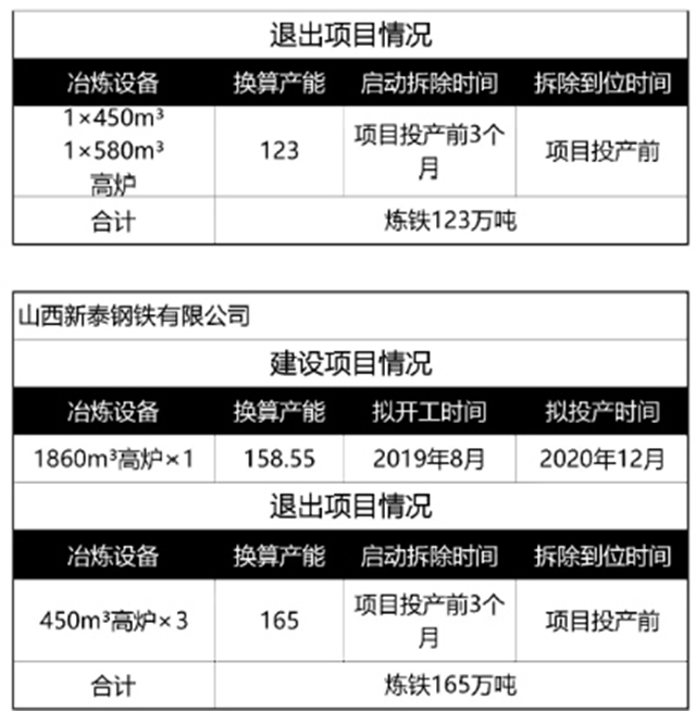 自2019年1月8日《鋼鐵行業(yè)產能置換實施辦法》發(fā)布以來,山西省公告實施產能置換的鋼企共計10家,為15省區(qū)最多。其中包括新建煉鋼產能1868萬噸、煉鐵產能1945.75萬噸。以下為具體項目列表: