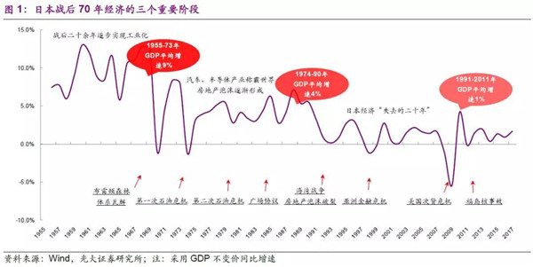 日本在“二戰(zhàn)”后的70多年時(shí)間里,取得了舉世矚目的經(jīng)濟(jì)騰飛,在亞洲國(guó)家中,率先進(jìn)入發(fā)達(dá)國(guó)家之列,也完成了工業(yè)化、城鎮(zhèn)化的進(jìn)程;在這期間,日本也經(jīng)歷了較完整的經(jīng)濟(jì)周期及產(chǎn)業(yè)、能源結(jié)構(gòu)轉(zhuǎn)型。環(huán)保產(chǎn)業(yè)既是工業(yè)、市政發(fā)展的重要衍生需求,也是約束宏觀經(jīng)濟(jì)的資源要素。本篇報(bào)告中,我們將透過(guò)日本的經(jīng)濟(jì)周期,詳細(xì)分析日本在發(fā)展中所面對(duì)的環(huán)境污染問(wèn)題、環(huán)保政策的歷程以及環(huán)保市場(chǎng)的演變。