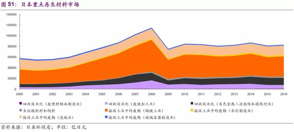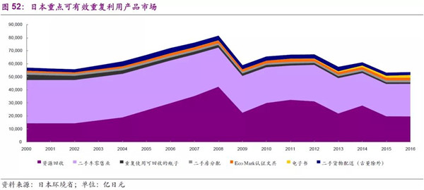 日本的再生資源利用市場(chǎng)空間也比較大,主要包括再生材料市場(chǎng)和可有效重復(fù)利用產(chǎn)品市場(chǎng),前者是生活、工商業(yè)回收、加工后可以再次使用的原料;而后者則是節(jié)約循環(huán)的二次利用商品。