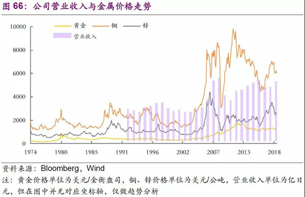 公司的營(yíng)業(yè)收入與金屬價(jià)格走勢(shì)有著較強(qiáng)的聯(lián)系,主要因?yàn)楣镜囊睙?、環(huán)保與循環(huán)再生、以及金屬加工業(yè)務(wù)均受到銅、鋅等金屬材料價(jià)格的直接影響:公司的冶煉業(yè)務(wù)以及環(huán)保中的循環(huán)利用業(yè)務(wù)中,銅、鋅等金屬材料的價(jià)格上漲直接利好公司營(yíng)業(yè)收入的增長(zhǎng);而公司的金屬加工業(yè)務(wù)中,銅、鋅作為其原材料,在一定程度上亦會(huì)影響公司成本。由于公司冶煉、環(huán)保與循環(huán)再生業(yè)務(wù)的營(yíng)業(yè)收入占比較大,總的來(lái)看金屬價(jià)格的走高有利于公司營(yíng)業(yè)收入的穩(wěn)步增長(zhǎng)(如2007、08年銅、鋅價(jià)格走高帶動(dòng)公司營(yíng)業(yè)收入高增長(zhǎng))。