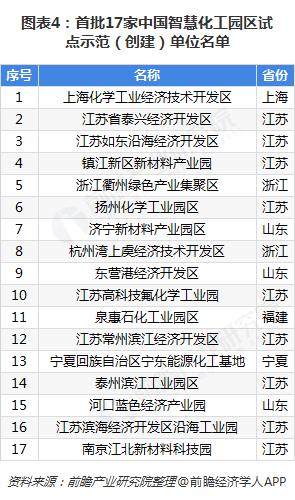 2018年11月30日,為落實(shí)國家相關(guān)產(chǎn)業(yè)政策,進(jìn)一步推動(dòng)我國化工園區(qū)智慧化建設(shè)進(jìn)程,受工業(yè)和信息化部原材料工業(yè)司委托,中國石油和化學(xué)工業(yè)聯(lián)合公布“中國智慧化工園區(qū)試點(diǎn)示范(創(chuàng)建)單位”名單,評(píng)選出上海化學(xué)工業(yè)經(jīng)濟(jì)技術(shù)開發(fā)區(qū)、江蘇省泰興經(jīng)濟(jì)開發(fā)區(qū)、江蘇如東沿海經(jīng)濟(jì)開發(fā)區(qū)等17家園區(qū)為首批示范單位。