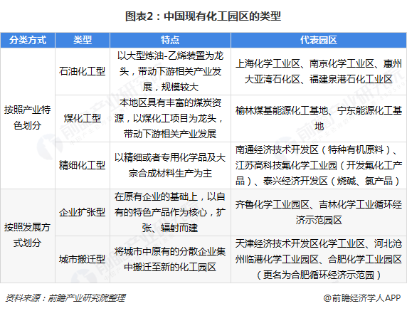 我國化工園區(qū)規(guī)模已經(jīng)形成并結(jié)合地方的世紀(jì)情況形成了各自的產(chǎn)業(yè)特色和發(fā)展類型。按產(chǎn)業(yè)特色,我國化工園區(qū)大致可分為石油化工型、煤化工型、精細(xì)化工型三種類型;按發(fā)展方式分,我國化工園區(qū)大致可以分為企業(yè)擴(kuò)張型、城市搬遷型兩種類型;各化工園區(qū)類型的特點(diǎn)和代表園區(qū)具體如下: