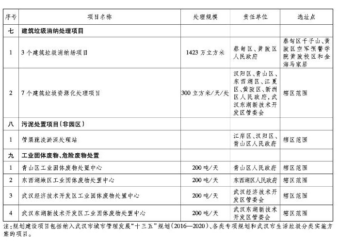 (三)推進建筑垃圾消納處置與資源化利用。采取山體修復(fù)、堆山造景、園林綠化等方式,規(guī)劃建設(shè)蔡甸區(qū)千子山、黃陂區(qū)空軍預(yù)警學院黃陂校區(qū)和金海馬家居等3處建筑棄土消納場所。建立“建筑棄料不出區(qū)、不出工地”管理模式,在成片拆遷、建設(shè)工地利用移動式設(shè)備,就地就近對建筑棄料進行處置和資源化利用。在漢陽區(qū)、青山區(qū)、蔡甸區(qū)、江夏區(qū)、東西湖區(qū)、黃陂區(qū)、新洲區(qū)、武漢東湖新技術(shù)開發(fā)區(qū)等區(qū)域各選址建設(shè)一座建筑棄料資源化處理廠。(責任單位:各區(qū)人民政府;配合單位:市發(fā)展改革委、市城管委、市城鄉(xiāng)建設(shè)委、市國土規(guī)劃局、市環(huán)保局)