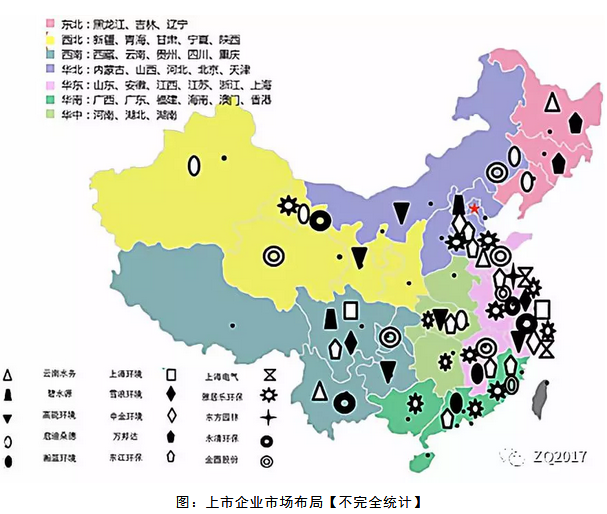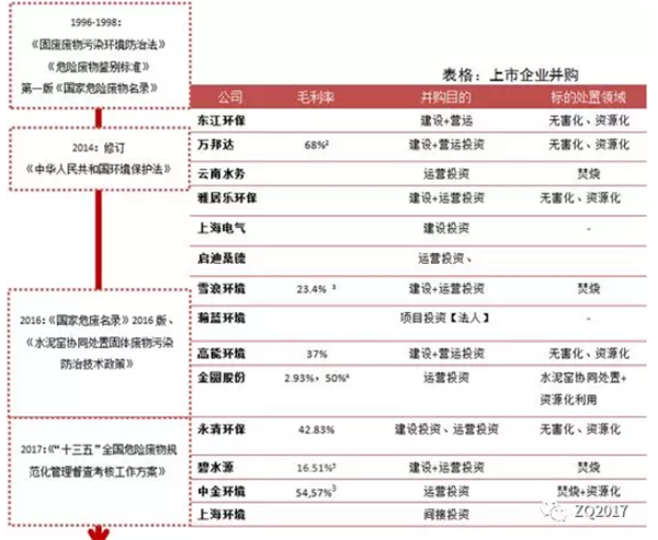 經(jīng)營(yíng)資質(zhì)是進(jìn)入危廢處置的門檻,并購(gòu)企業(yè)是進(jìn)入危廢市場(chǎng)的有效方式。據(jù)不完全統(tǒng)計(jì),2017-2018年,危廢行業(yè)并購(gòu)事件約為30起。從數(shù)量來(lái)看,東江環(huán)保、永清環(huán)保并購(gòu)活躍,從標(biāo)的規(guī)模,金圓股份、中金化境、中金環(huán)境均在10萬(wàn)噸/年以上。從股權(quán)比例來(lái)看,控股形式占主流。基于上市公司分析【下圖】:目前東江環(huán)保、高能環(huán)境、雅居樂(lè)環(huán)保布局基本涵蓋全國(guó)范圍,碧水源、云南水務(wù)主要集中在京津冀及周邊地區(qū),這和公司的業(yè)務(wù)以及區(qū)域資源需求有較大的聯(lián)系。而雪浪環(huán)境、上海環(huán)境現(xiàn)階段主要在長(zhǎng)三角和西南工業(yè)區(qū)域拓展。