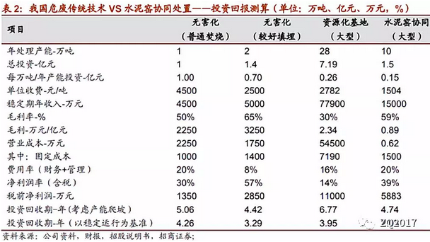 2.技術(shù)升級(jí)與創(chuàng)新:如目前頗受關(guān)注的水泥協(xié)同處置技術(shù),在選址、建設(shè)周期、運(yùn)營(yíng)成本等方面有優(yōu)勢(shì),有助提升產(chǎn)能效率。從處置類別,目前多氯聯(lián)苯、氰化物和廢化學(xué)試處置溢價(jià)較高,暗示技術(shù)需求較為稀缺。