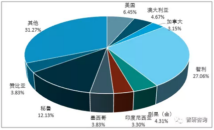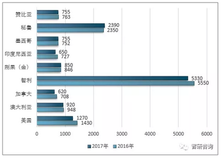 2017年全球銅礦產(chǎn)量格局