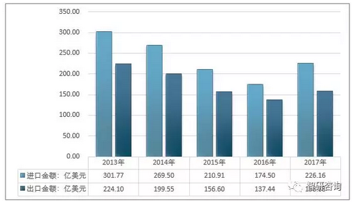 2017年全球廢銅(HS:7404)進口總額為226.16億美元,較2016年增長29.60%;出口總額為158.88億美元,較2016年增長15.60%。
