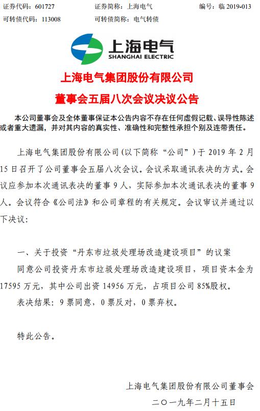 智通財經(jīng)訊,上海電氣公告,公司董事會同意公司投資丹東市垃圾處理場改造建設(shè)項目,項目資本金為1.76億元,其中公司出資1.5億元,占項目公司85%股權(quán)。