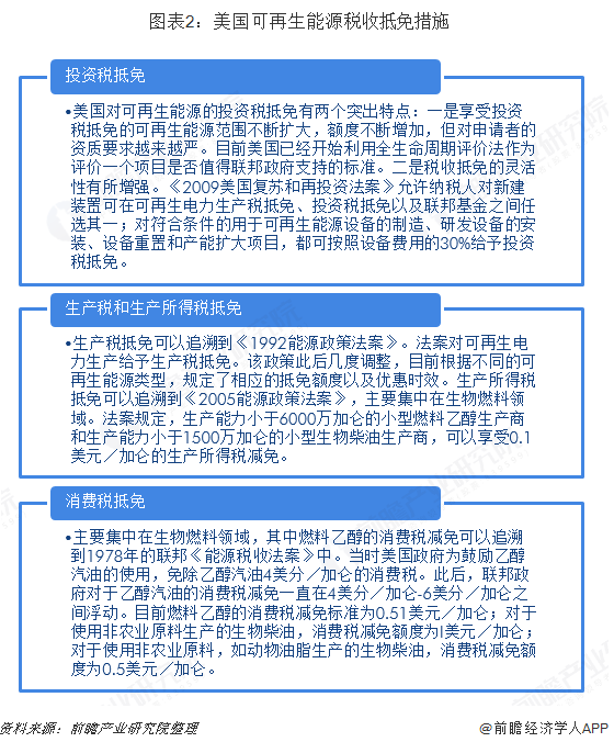 激勵(lì)類政策中稅收抵免是聯(lián)邦政府促進(jìn)可再生能源發(fā)展的最主要的經(jīng)濟(jì)措施。聯(lián)邦政府會(huì)根據(jù)可再生能源發(fā)展的實(shí)際情況,對(duì)稅收抵免的覆蓋范圍、抵免額度不斷予以調(diào)整。