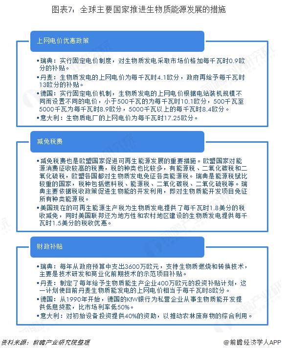 歐盟是當(dāng)前全球生產(chǎn)和消費(fèi)生物質(zhì)燃料最多的國家,美國排在全球第二位,但與歐盟在利用規(guī)模上仍存在較大差距。這兩大主體引領(lǐng)者全球生物質(zhì)能源的發(fā)展。對(duì)比各國的政策和法規(guī),上網(wǎng)電價(jià)優(yōu)惠、稅費(fèi)減免和財(cái)政補(bǔ)貼是最為常用的激勵(lì)性政策手段。