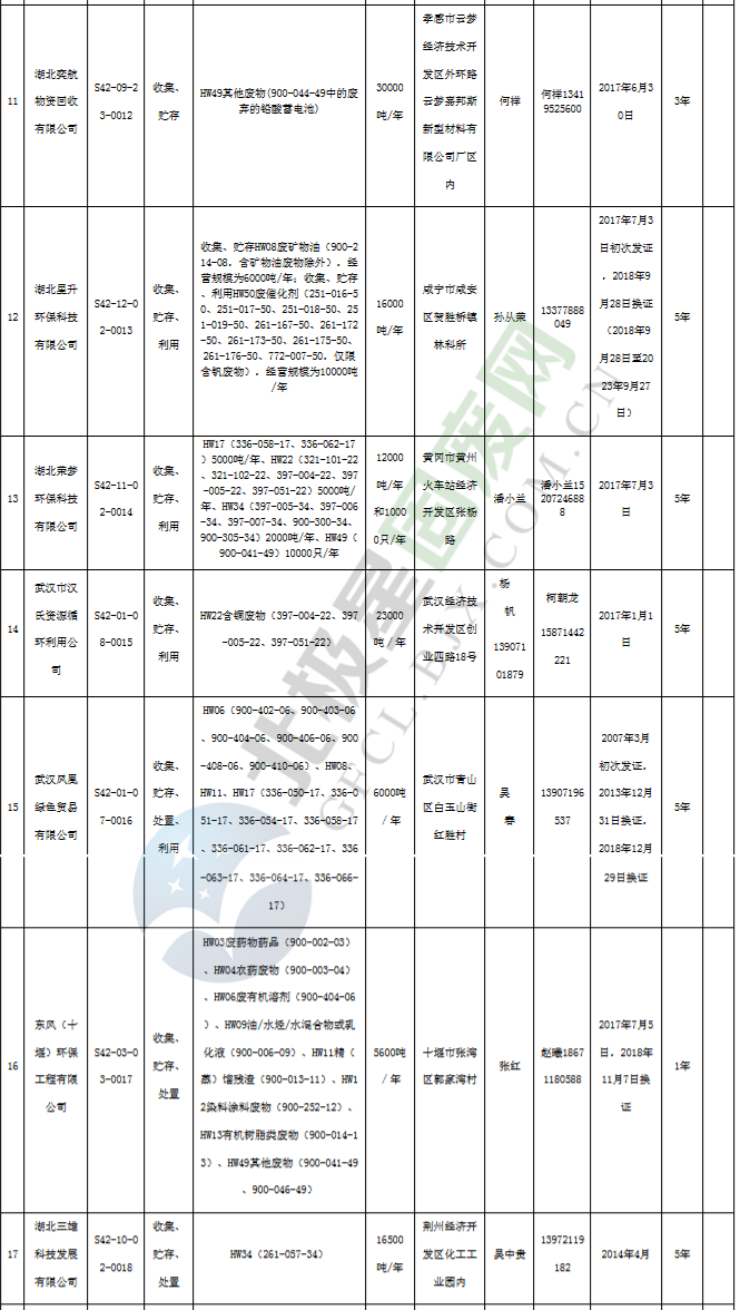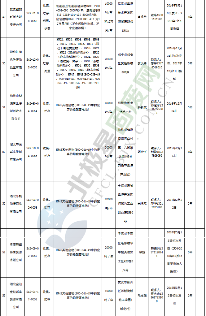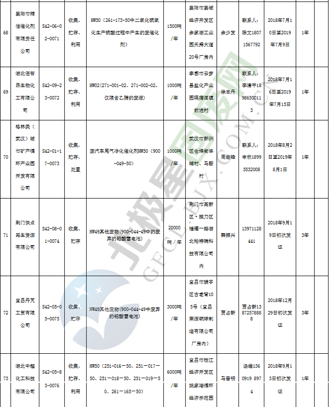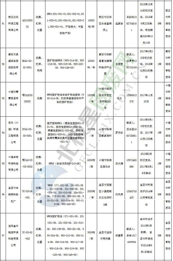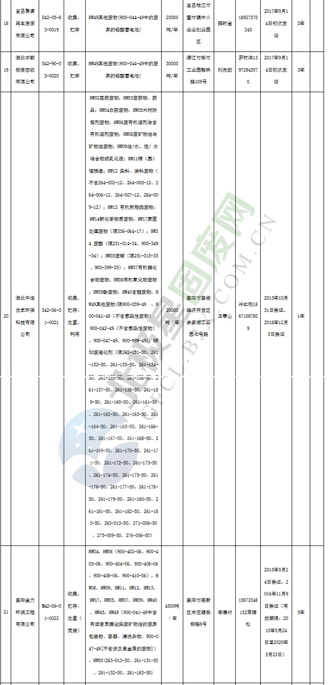 日前湖北省生態(tài)環(huán)境廳發(fā)布了《湖北省危險(xiǎn)廢物經(jīng)營(yíng)許可證》單位名錄(截至2019年2月19日,共125家)。