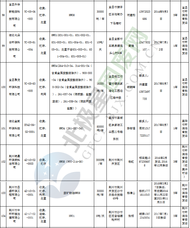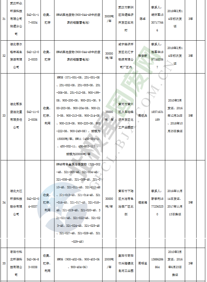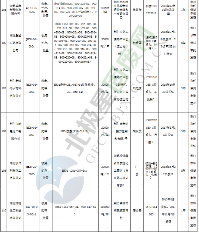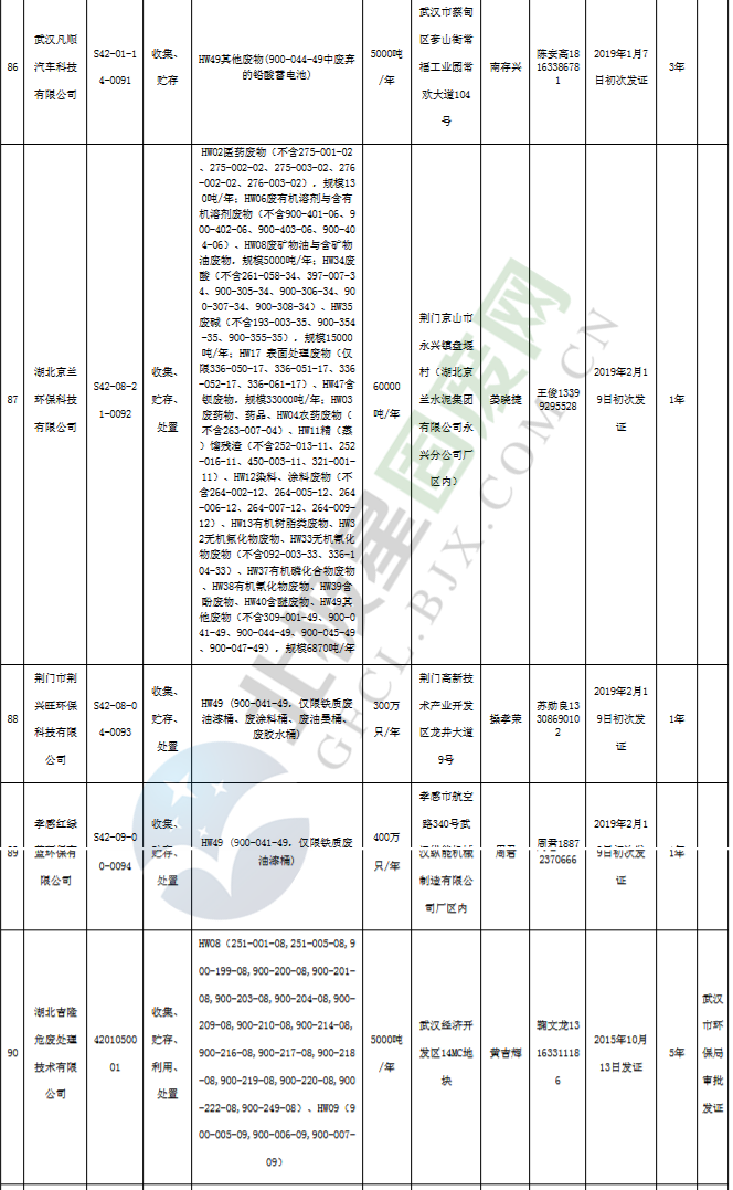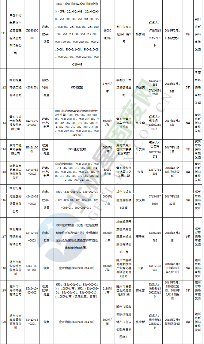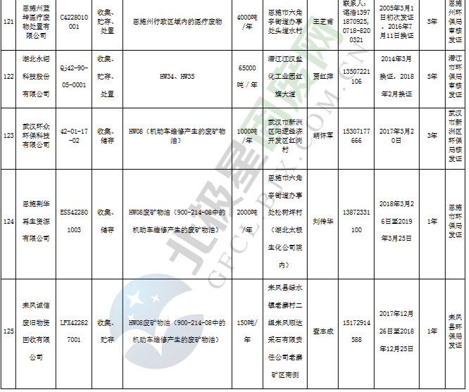 原標(biāo)題:《湖北省危險(xiǎn)廢物經(jīng)營(yíng)許可證》單位名錄(截至2019年2月19日,共125家)