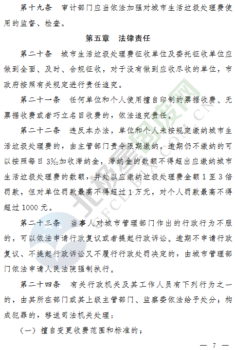 答:城市生活垃圾處理費(fèi)實(shí)行收支兩條線管理。財(cái)政設(shè)立有專戶管理生活垃圾處理費(fèi),??顚S谩4諉挝患皶r(shí)足額上繳代收的生活垃圾處理費(fèi),不得隱瞞、截留、坐支和挪用。市環(huán)衛(wèi)處具體負(fù)責(zé)城市生活垃圾處理費(fèi)的征收工作。城市生活垃圾處理費(fèi)征收可以采用直接收取或者委托收取兩種形式。采取委托收取方式征收的,可以委托區(qū)環(huán)境衛(wèi)生管理部門(mén)或者其他具有社會(huì)服務(wù)、公共管理職能的企事業(yè)單位代為收取。未經(jīng)委托的任何單位、個(gè)人不得擅自收取生活垃圾處理費(fèi)。征收人員在征收過(guò)程中,必須使用財(cái)政部門(mén)統(tǒng)一印制的非稅收入票據(jù),否則可以拒繳。