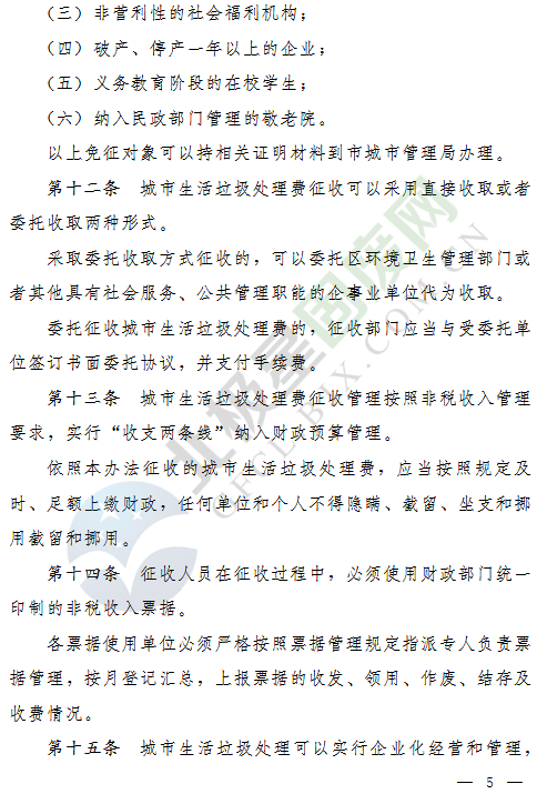 答:以下對(duì)象可以免征城市生活垃圾處理費(fèi):