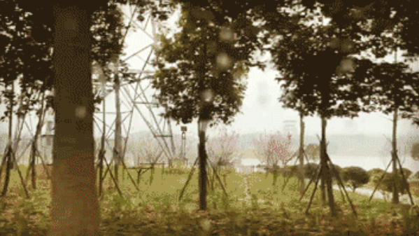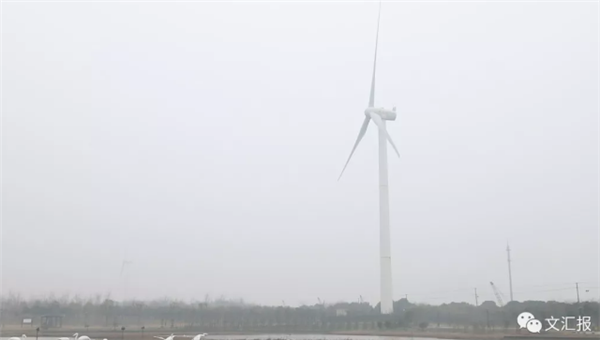 細雨蒙蒙,車駛?cè)肷虾@细凵鷳B(tài)環(huán)?;?。兩側(cè)樹木成林,草坪成片。生態(tài)苑里,“烏篷聽雨”“蘆花鷺影”景致別樣,儼然一座郊野公園。不遠處,白色的風力發(fā)電機,在高空中緩緩轉(zhuǎn)動3支葉片。不時有運輸集卡從身邊駛過。