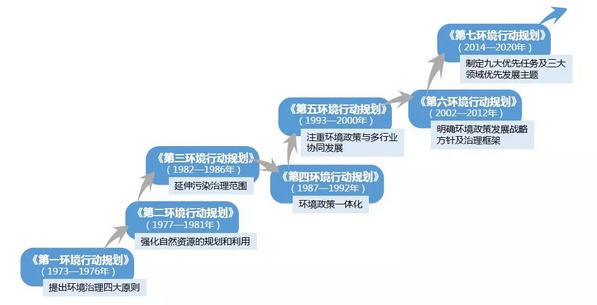 應(yīng)巴黎會議要求,歐共體委員會在1973年推出了歐共體第一個(gè)環(huán)境行動規(guī)劃(1973-1976),規(guī)定了5年內(nèi)歐共體環(huán)境政策的目標(biāo)、內(nèi)容,并對環(huán)境政策內(nèi)容進(jìn)行了具體闡釋。截止目前,歐盟已經(jīng)通過了7份環(huán)境行動計(jì)劃,對歐盟環(huán)境政策的完善、共同體內(nèi)的環(huán)境保護(hù)水平的提高有重大意義。