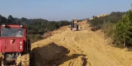 5、道路K0+900處打混凝土墊層,小橋至養(yǎng)豬場(chǎng)段土方開挖,320國(guó)道口至社公山方向兩處便道碎石回填,及便道修筑。