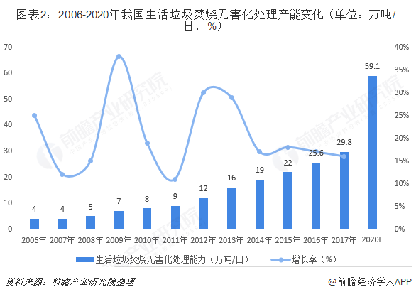 市場(chǎng)規(guī)模:垃圾焚燒產(chǎn)能持續(xù)增長(zhǎng),十三五規(guī)?;蜻_(dá)兩千億
