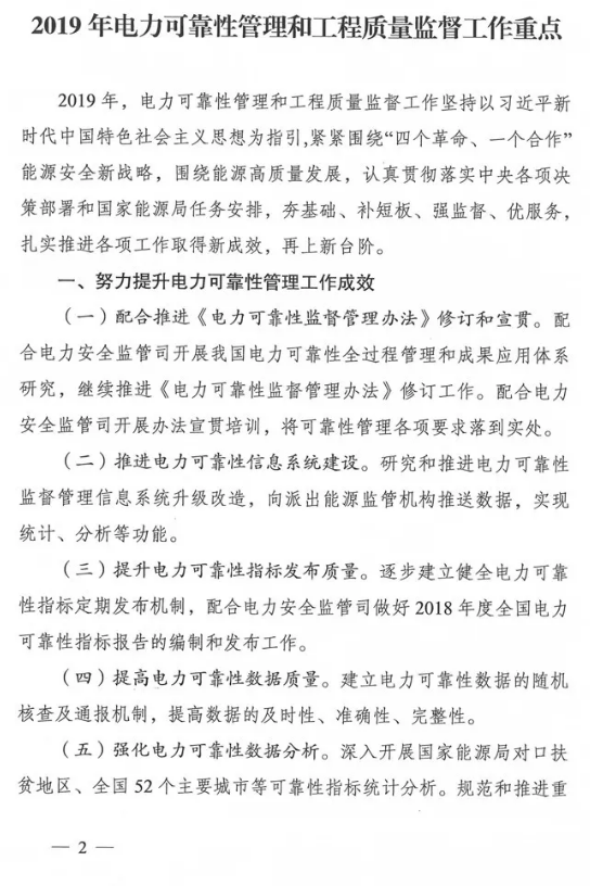 日前國家能源局綜合司印發(fā)了,《關(guān)于印發(fā)2019電力可靠性管理和工程質(zhì)量監(jiān)督工作重點通知》,按照《國家能源局綜合司關(guān)于印發(fā)2019年電力安全生產(chǎn)工作思路和重點任務安排的通知》(國能綜通安全【2019】7號)的有關(guān)部署,國家能源局綜合司制定了《2019年電力可靠性管理和工程質(zhì)量監(jiān)督工作重點》。