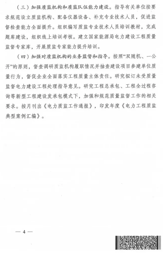 文件提出,要完善電力建設(shè)工程質(zhì)量監(jiān)督技術(shù)支撐體系。配合電力安全監(jiān)管司制定水電、核電常規(guī)島、海上風電、光熱風電、生物質(zhì)發(fā)電、GIL綜合管廊工程等質(zhì)量監(jiān)督檢查大綱。