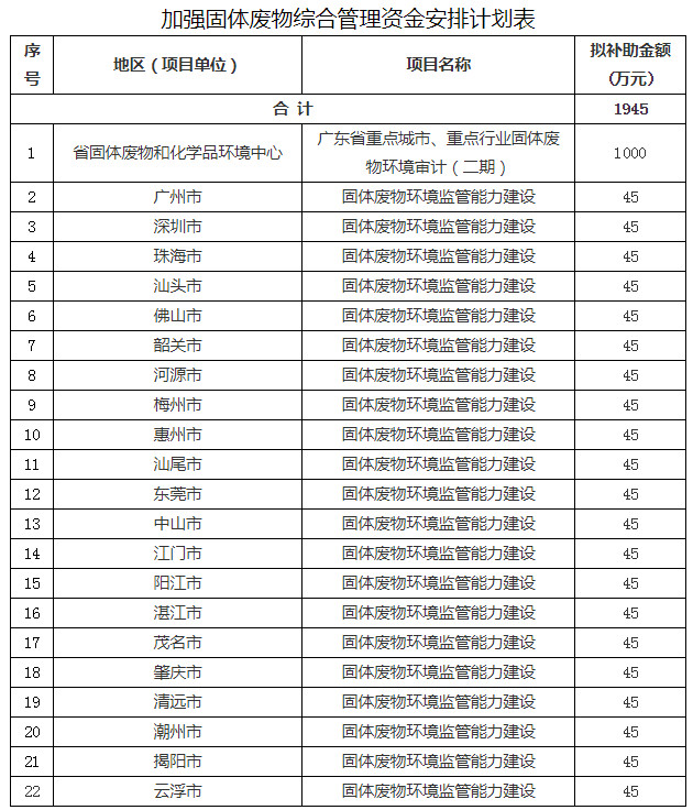 3.加強(qiáng)固體廢物綜合管理資金安排計劃表