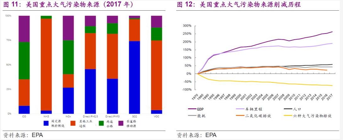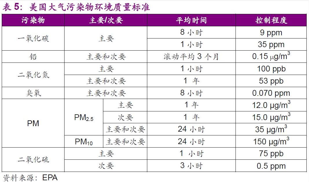 綜上所述,美國的大氣環(huán)保治理隨污染(洛杉磯煙霧、多諾拉事件)而起,通過一系列法律法規(guī)的修訂、全方面污染源的控制、以及特有的排污權(quán)交易體系的建立,較為成功的實(shí)現(xiàn)了空氣環(huán)境的治理和顯著改善。在政策和監(jiān)管的雙重壓力下,美國的排污企業(yè)(電廠、鋼企等)多通過自行研發(fā)并安裝脫硫脫硝設(shè)施和優(yōu)化生產(chǎn)技術(shù)的方式實(shí)現(xiàn)清潔排放,故美國并沒有大型的專精于脫硫脫硝技術(shù)的大氣環(huán)保類公司。目前,大氣治理行業(yè)在美國的關(guān)注度和市場均處于低位,這與美國目前的工業(yè)企業(yè)產(chǎn)能總量、布局、以及技術(shù)的先進(jìn)程度有著很大關(guān)系,美國大氣治理行業(yè)目前的側(cè)重點(diǎn)在室內(nèi)空氣污染技術(shù)優(yōu)化和設(shè)備創(chuàng)新上,相關(guān)公司也多為小型的專注于室內(nèi)空氣污染解決方案和設(shè)備銷售的公司。