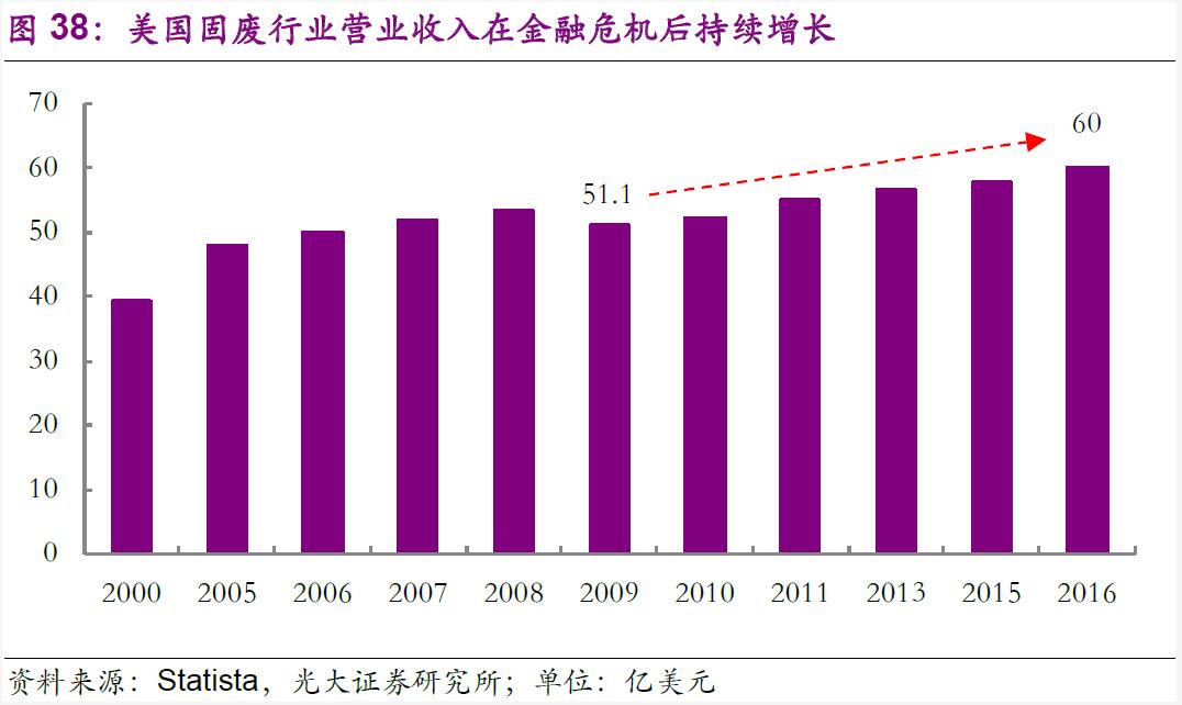 《固體廢物處置法》催化行業(yè)快速成長。在水、大氣領(lǐng)域指導(dǎo)性文件陸續(xù)出臺之后,美國固廢領(lǐng)域的綱領(lǐng)性法律法規(guī)—《固體廢物處置法》最終于1965年正式頒布。作為固廢領(lǐng)域的指導(dǎo)性文件,該法案不僅為未來該領(lǐng)域法律法規(guī)的制定搭好了框架,更重要的是,它大幅提高了垃圾收集和處理行業(yè)的標(biāo)準(zhǔn),在擴(kuò)大固廢行業(yè)市場份額的同時,也導(dǎo)致了成本的激增。小型公司只有通過不斷地合并,才能通過規(guī)模效應(yīng)來承擔(dān)標(biāo)準(zhǔn)提高帶來的高額投資和運(yùn)營費(fèi)用。