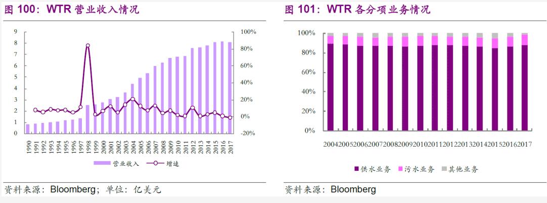 WTR主要通過旗下子公司,在美國經(jīng)營供水、污水處理等公用事業(yè)業(yè)務(wù),主要客戶為住宅、商業(yè)、消防、工業(yè)等,服務(wù)賓州、俄亥俄州、北卡羅萊納州、伊利諾州、德州、紐澤西州、印第安納州、維吉尼亞等地約300萬用戶;同時也提供下水道管線維修及保護(hù)服務(wù);此外,公司也為天然氣鉆探公司供應(yīng)非公用未處理過的原水。當(dāng)前,公司運(yùn)營和維護(hù)超過12800英里的管網(wǎng),21個地表水處理廠,多處水井和187個污水處理廠。