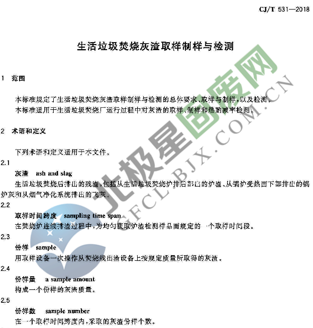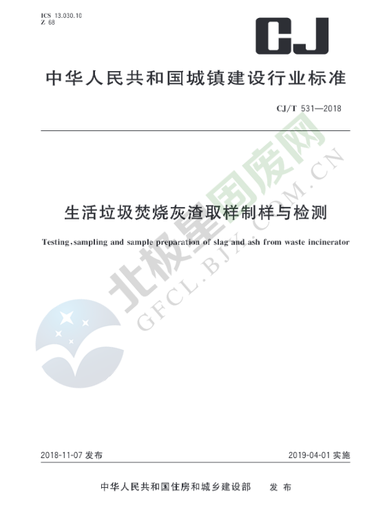 現(xiàn)批準(zhǔn)《生活垃圾焚燒灰渣取樣制樣與檢測(cè)》為城鎮(zhèn)建設(shè)行業(yè)產(chǎn)品標(biāo)準(zhǔn),編號(hào)為CJ/T531-2018,自2019年4月1日起實(shí)施。