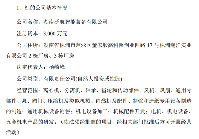 公告顯示,標的公司泛航裝備成立于2018 年 3 月,是集離心鼓風機研發(fā)、制造、檢測、裝配及試驗于一體的創(chuàng)新型技術企業(yè),業(yè)務范圍包括高速高效離心鼓風機、混合器、機電設備的研發(fā)、制造與銷售。