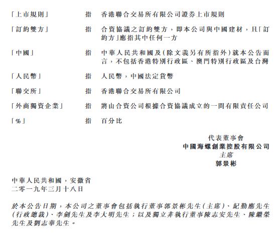 原標題:海螺創(chuàng)業(yè)(00586)附屬與中國建材控股設(shè)立合營 以從事固廢處置業(yè)務(wù)